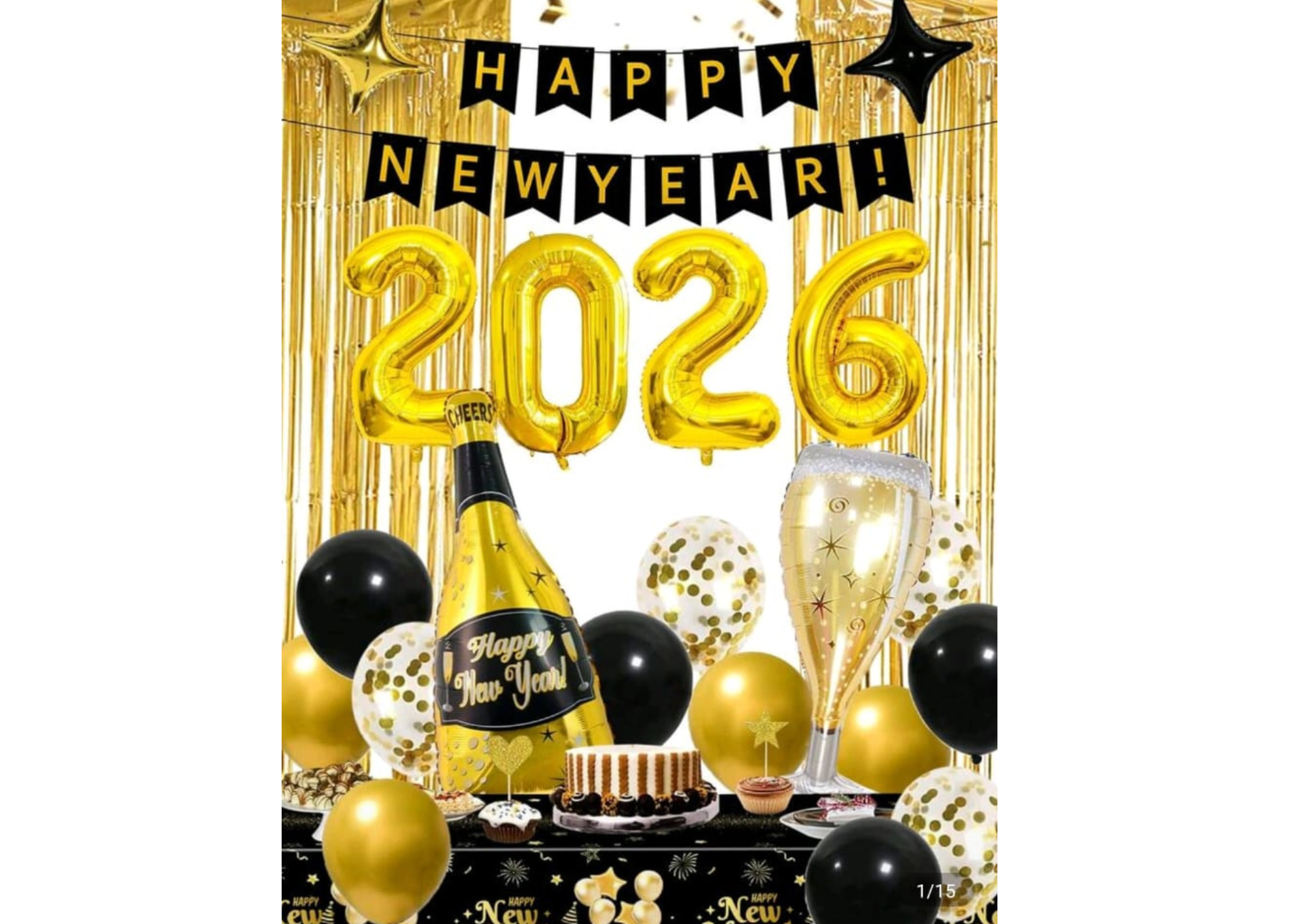 SET DE GLOBO “FELIZ AÑO NUEVO 2026” CORTINA/GLOBOSDE LATEX/CORTINA/GLOBOS FORMAS