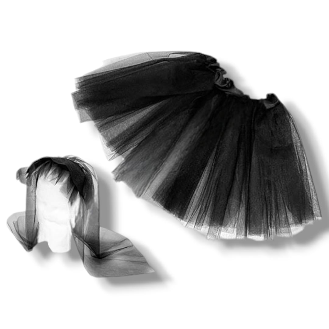 SET NOVIA/VIUDA NEGRA CON (TUTU + VELO – VINCHA) PARA ADULTOS – HALLOWEEN