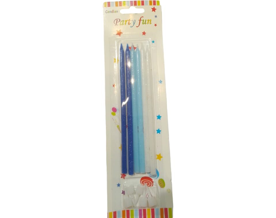 VELA FINITA COMBINADAS CEL/BCO/AZUL X 6 C/PORTAVELAS – PARTY FUN